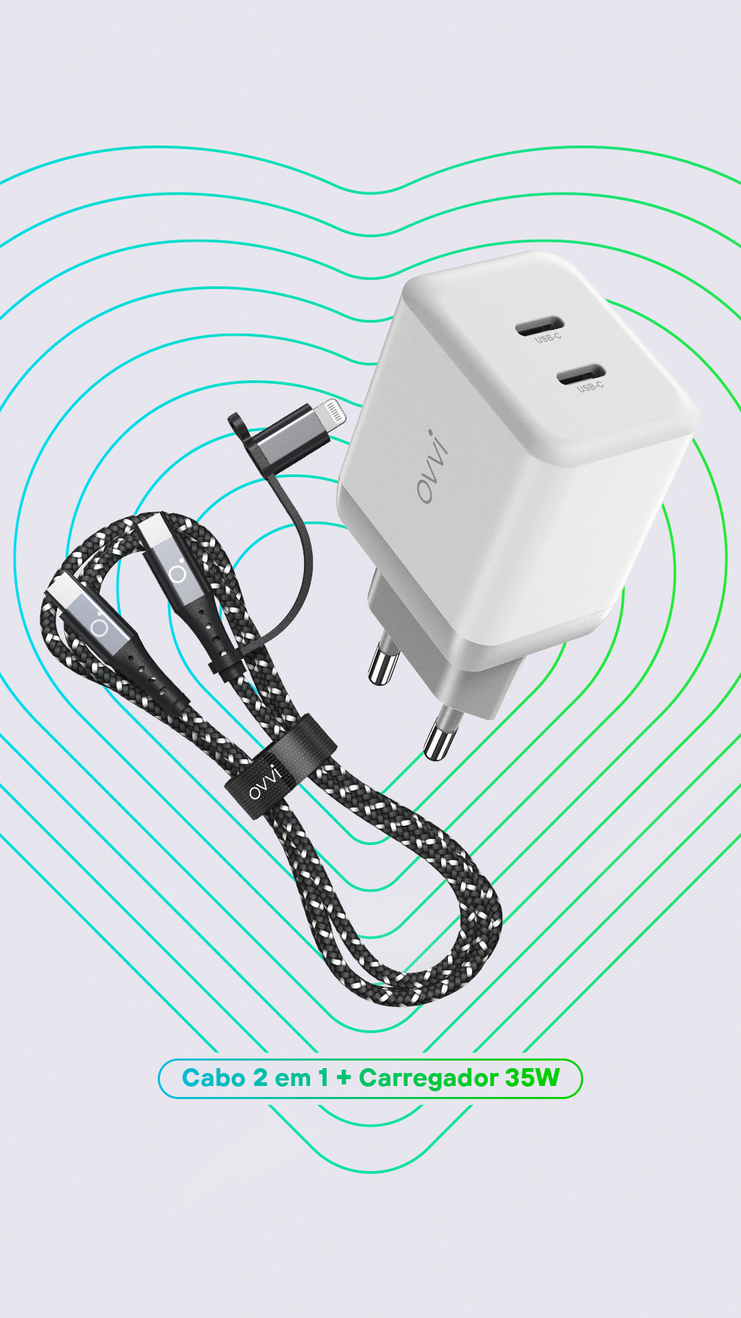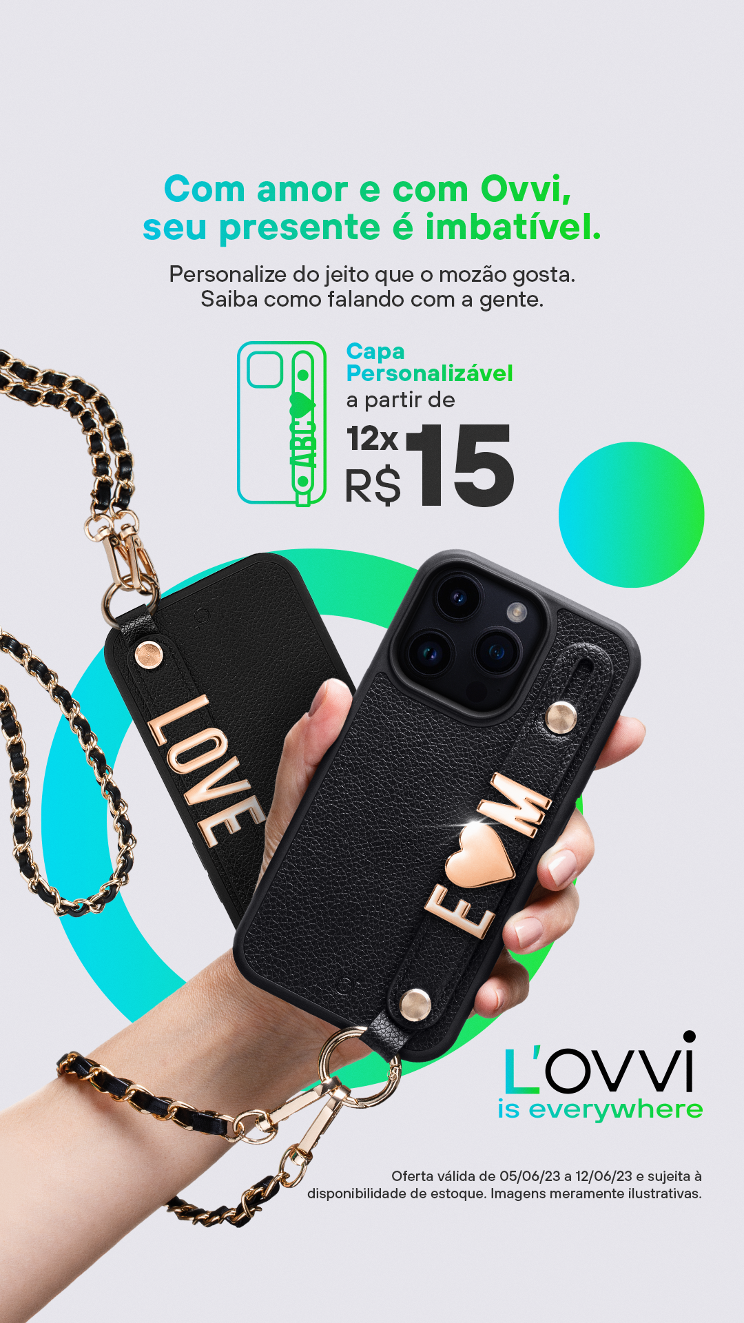 Criação de Key Visual com diversas soluções e formatos para a campanha de Dia dos Namorados OVVI, marca própria de acessórios de tecnologia da VIVO.